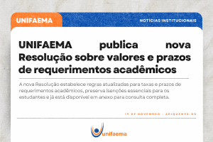 O Centro Universitário FAEMA – UNIFAEMA torna pública a Resolução 017/2025/GPM/UNIDAS, que regulamenta os valores, taxas e prazos referentes aos